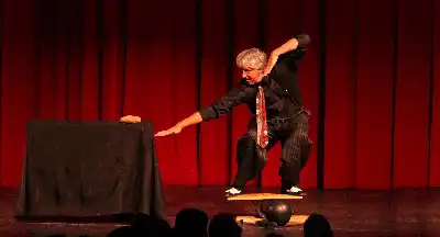 His hilarious, irreverent, tongue-in-cheek style of self-deprecating comedy contrasts with his surprising skill as a sleight-of-hand artist and accomplished juggler.